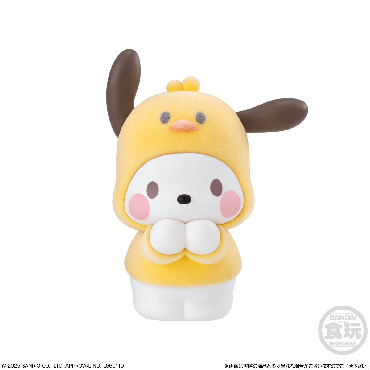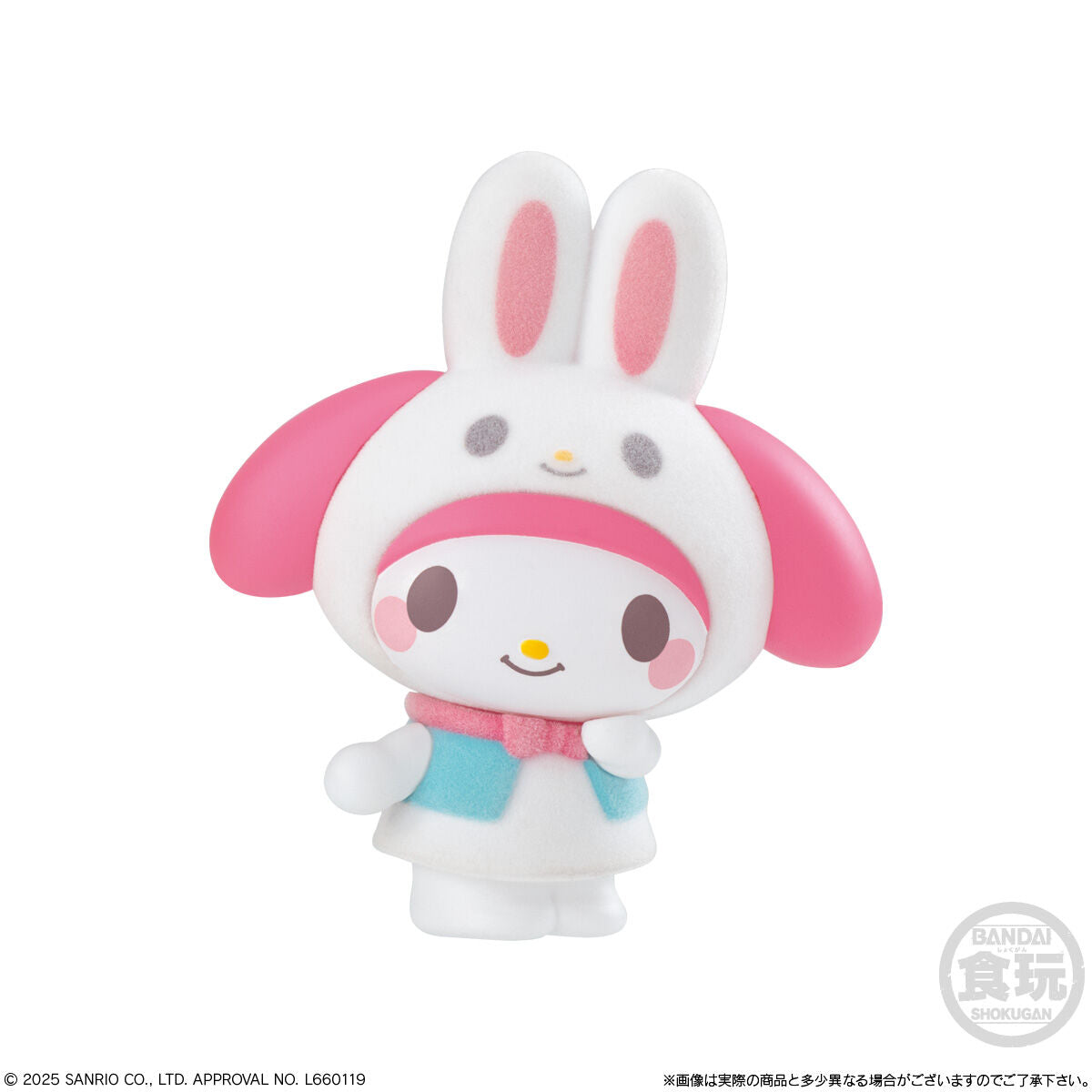 The Kigurumies series appears with Sanrio characters! There are 6 types in total. Each comes with one piece of soda-flavored gum. The kigurumi outfit features a flocked, fluffy texture. The cute designs show the characters dressed up in kigurumi of their close friends.